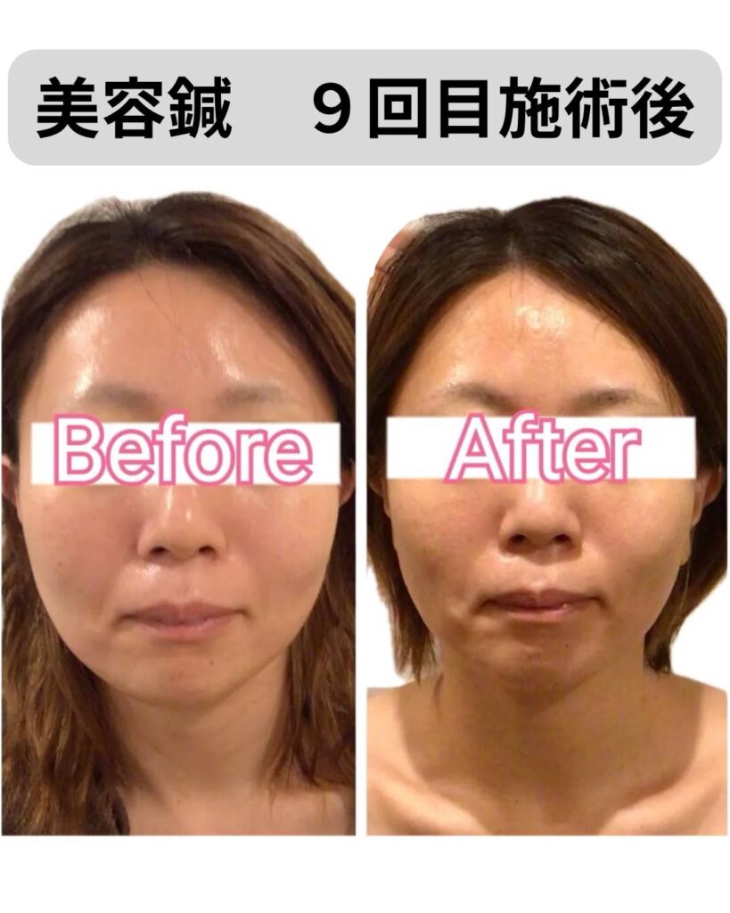 こちらは、美容鍼を継続して受けてくださっているお客様の9回目施術後のビフォーアフターです✨